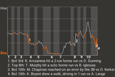 The clutch at-bat came in the bottom of the tenth inning, when Boston first baseman Kris Bryant, facing Alex Lange, had a run-scoring walk. It gave the Minutemen the 6-5 win.