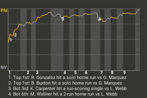 Byron Buxton had a big solo home run for the Phalanx in the top of the first inning. With Philadelphia leading 1-0 and the bases empty, he sized up a fastball from German Marquez, who finished 3rd in the UL in wins with 15 in 2022, and punished it. The result was his 9th home run of the season, which put the Phalanx on top, 2-0.