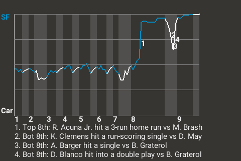 In the top of the eighth, the Dragons grabbed the lead when Acuna Jr. hit his 11th home run of the season. The 3-run home run off Matt Brash made it 4-1, San Francisco.