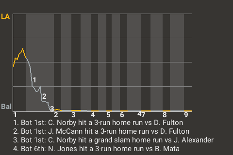 2 (9, 1st Inning off D. Fulton, 2 on, 0 outs; 1st Inning off J. Alexander, 3 on, 2 outs)