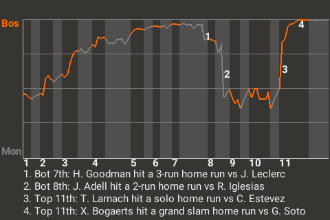 Boston took the lead, 6-5, on Trevor Larnach's 7th home run of the season. The solo home run came off Montreal pitcher Carlos Estevez in the top of the 11th.