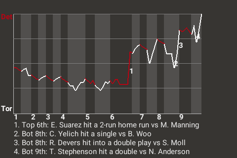 The Demons got a big at-bat from third baseman Eugenio Suarez. For the game, Suarez went 1 for 3 with a home run and a walk, while adding 2 RBI and scoring once. In the top of the sixth, with a runner on 1st, he stroked a 2-run home run. His 14th home run of the season gave Detroit a 2-1 lead.