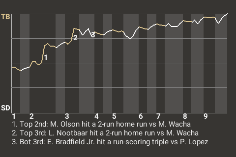 The Bandits got a big at-bat from first baseman Matt Olson. For the game, Olson was 1-4 with a home run, while adding 2 RBI and scoring once. In the top of the second, with a runner on 2nd, he stroked a 2-run home run. His 11th home run of the season gave Tampa Bay a 2-0 lead.