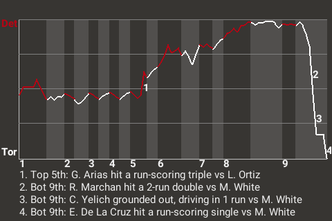 (3, 9th Inning off M. White, 3 on, 1 out)