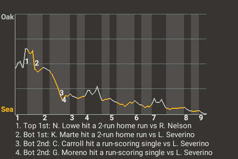 Ketel Marte, who leads the UL in doubles with 20, chipped in a 2-run home run for Seattle in the bottom of the first. For the game, the second baseman had 2 hits in 3 at-bats with 1 home run, 1 single, 1 run scored, and 2 RBI.