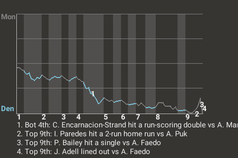 Bello's performance can only be described as masterful. He notched 10 strikeouts in 6 innings while allowing no hits. Bello goes to 2-1 on the year with 36 strikeouts.