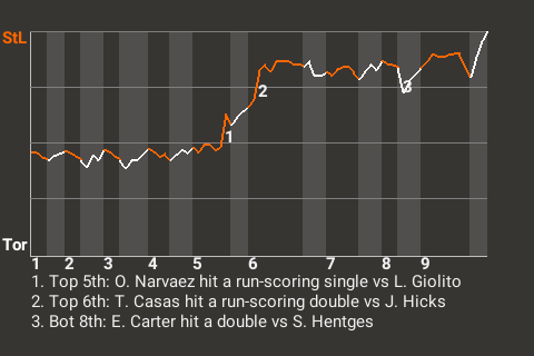 Who knows how it might've ended, had it not been for Omar Narvaez? The St Louis catcher had a run-scoring single in the top of the fifth inning to put the Sluggers on top, 1-0. For the game, Narvaez had 1 double and 1 single in 3 at-bats.