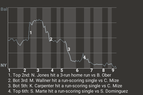 2 (13, 5th Inning off C. Mize, 0 on, 1 out; 6th Inning off G. Santos, 0 on, 1 out)
