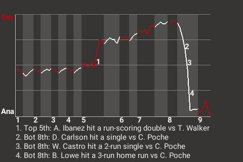 Anaheim took a 5-3 lead on Brandon Lowe's 18th home run of the season. The 3-run home run, which Lowe hit in the bottom of the eighth, left Detroit pitcher Colin Poche visibly frustrated.