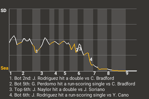(10, 2nd Inning off C. Bradford, 1 on, 0 outs)