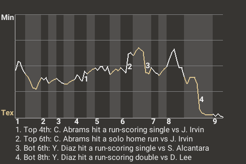 Yandy Diaz hit a run-scoring double off Dylan Lee in the bottom of the eighth, which put the Vipers in front, 3-2. In addition to the double, Diaz had 1 single, while going 2 for 4.