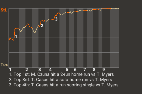 Early in the game, Ozuna had a 2-run home run for St Louis. It was his 19th home run of the season and put the Sluggers on top, 2-0.