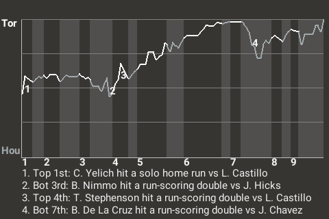 In the top of the sixth, Toronto shortstop Mauricio Dubon had a productive at-bat. With runners on 2nd and 3rd and no one out, Dubon stroked a 2-run single to right. It made the score 6-1, Toronto. For the game, he went 2-4 with 2 singles. He drove in 2 runs and scored once.