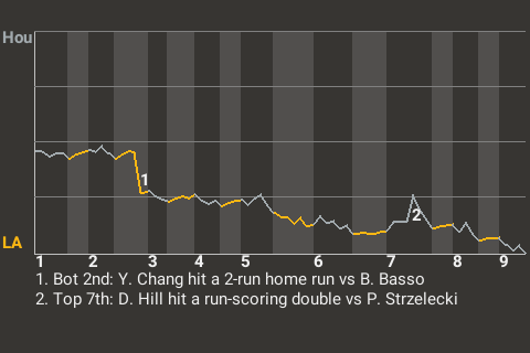 The Spirit got a big at-bat from first baseman Yu Chang. For the game, Chang was 1 for 2 with a home run and a walk. He scored 2 runs and drove in 2. In the bottom of the second, with a runner on 1st, he stroked a 2-run home run. His 5th home run of the season gave Los Angeles a 2-0 lead.