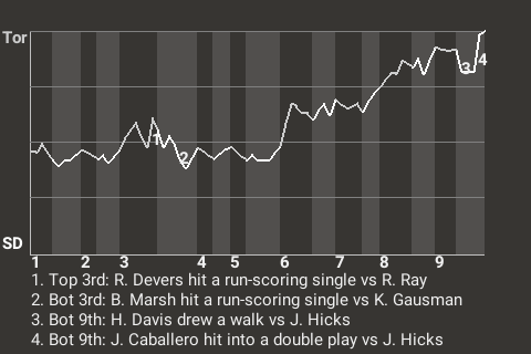 With two out in the top of the third, Rafael Devers put Toronto in front, 1-0, with a run-scoring single. The Hogs went on to win the ballgame.