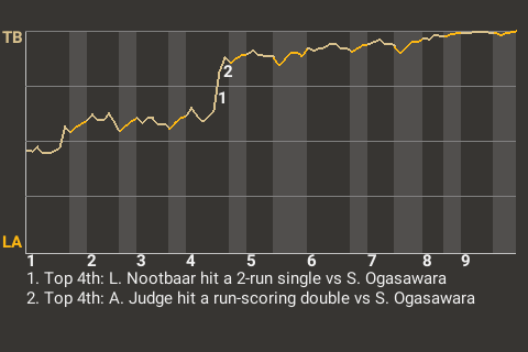 With Tampa Bay leading 1-0 in the top of the fourth, Nootbaar hit a 2-run single off Los Angeles hurler Shinnosuke Ogasawara. It was the 77th hit of the season for Nootbaar and put his team ahead, 3-0.