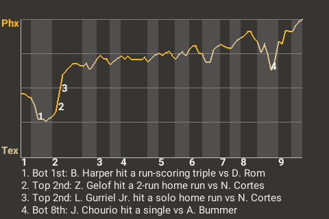 Zack Gelof chipped in a 2-run home run for Phoenix in the top of the second. For the game, the second baseman had 2 hits in 4 at-bats with 1 home run, 1 single, 1 run scored, and 2 runs batted in.