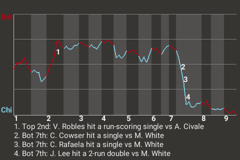 Lee had a timely hit for Chicago in the bottom of the seventh. With Chicago trailing 3-2, he turned a 1-1 changeup into a 2-run double. It was his 14th double of the season, making it 4-3, Chicago.