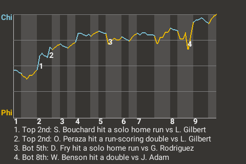 Oswald Peraza, who is tied for 5th in the UL in triples with 4, had a direct impact on the outcome. Peraza contributed a run-scoring double in the top of the second inning to put Chicago up, 2-0.