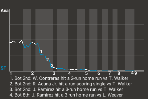Willson Contreras, who is a three-time All-Star, took Anaheim hurler Taijuan Walker deep in the bottom of the second. His 2-run home run put the Dragons on top, 2-0. In all, Contreras had 1 single in addition to the home run, while going 2 for 4.