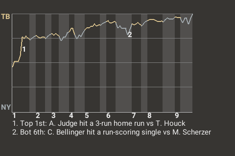 Max Scherzer never let New York get something going. The Tampa Bay right-hander commanded his fastball in pitching the Bandits to a 4-1 win. Matt Strahm earned his 15th save in 16 chances. Tampa Bay improves to 59-36 with the win. They lead their division by 8½ games.
