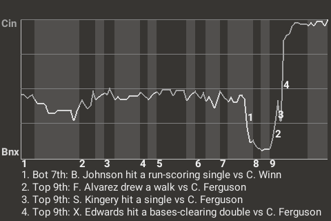 Who knows how it would've ended, had it not been for Xavier Edwards? The 25-year old third baseman Edwards stroked a bases-clearing double in the top of the ninth inning to put Cincinnati up, 4-3. For the game, he was 2 for 5, including 1 double and 1 single.