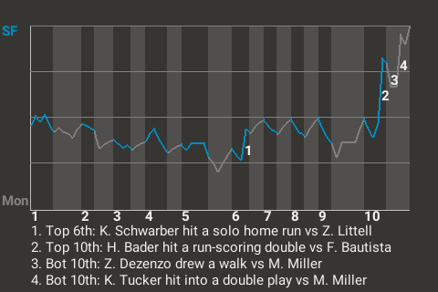 Who knows how it would've ended, had it not been for Harrison Bader? The four-time CBA Gold Glove Award winner Bader stroked a run-scoring double in the top of the tenth inning to put San Francisco up, 2-1. For the game, he was 2 for 4, including 1 double and 1 single.