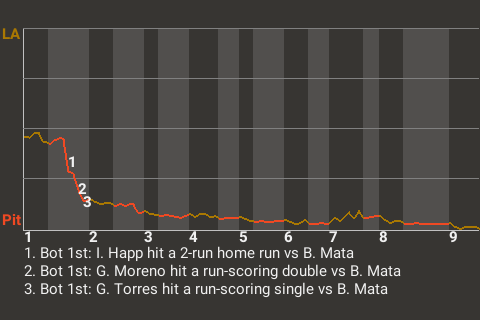 The Ironmen got a big at-bat from left fielder Ian Happ. For the game, Happ was 1-4 with a home run. He drove in 2 runs and scored once. In the bottom of the first, with a runner on 1st, he stroked a 2-run home run. His 18th home run of the season gave Pittsburgh a 2-0 lead.