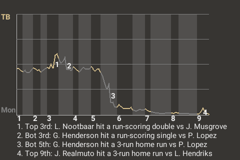 (9, 9th Inning off L. Hendriks, 1 on, 0 outs)