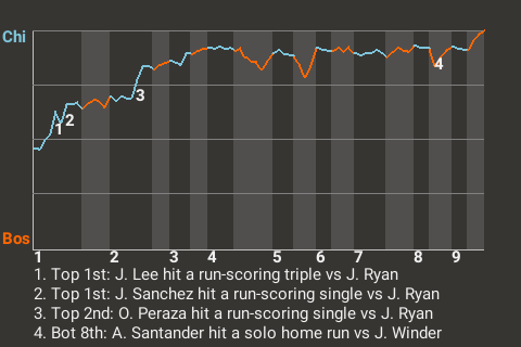 Jung-hoo Lee hit a run-scoring triple off Joe Ryan in the top of the first, which put the Explorers in front, 1-0. Lee had 1 single, in addition to the triple. For the game, he went 2 for 4.