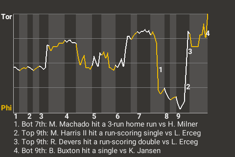 The Toronto Hogs weathered an outstanding game by Philadelphia third baseman Manny Machado to topple the Phalanx, 7-6. Machado was 4 for 5 with 2 home runs and 2 singles. He drove in 5 runs and scored twice. John King, now 4-3, was credited with the win in 1 innings of relief. He allowed no runs on no hits, while striking out 2 and walking 0. After today's action, Toronto sits at 52-55, while Philadelphia falls to 50-57.