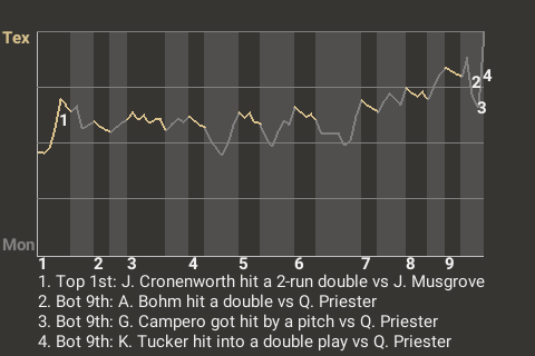 Who knows how it might've ended, had it not been for Jake Cronenworth? The Texas second baseman had a 2-run double in the top of the first inning to put the Vipers on top, 2-0. For the game, Cronenworth had 1 double and 1 single in 3 at-bats.