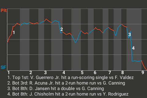 San Francisco took a 4-3 lead on Jazz Chisholm's 25th home run of the season. The 2-run home run, which Chisholm hit in the bottom of the eighth, left Pittsburgh pitcher Yariel Rodriguez visibly frustrated.