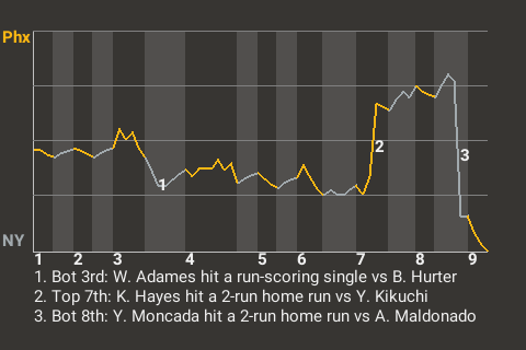 New York took a 3-2 lead on Yoan Moncada's 16th home run of the season. The 2-run home run, which Moncada hit in the bottom of the eighth, left Phoenix pitcher Anthony Maldonado visibly frustrated.