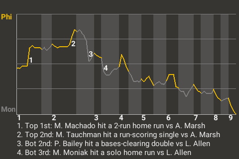 The Montreal PoorBoys weathered an outstanding game by Philadelphia third baseman Manny Machado to topple the Phalanx, 5-4. Machado went 2-4 with a home run, while adding 3 RBI and scoring once. Felix Bautista recorded the save, making him 18 for 21. Montreal is now 52-61, Philadelphia 53-60.