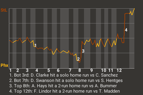 St Louis took a 4-2 lead on Francisco Lindor's 24th home run of the season. The 2-run home run, which Lindor hit in the top of the 12th, left Phoenix pitcher Ty Madden visibly frustrated.