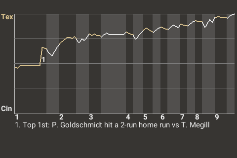 Texas used the hitting of Paul Goldschmidt to pick up the win. The designated hitter clubbed a 2-run home run in the top of the first inning to put the Vipers on top, 2-0. For the game, Goldschmidt had 1 home run and 1 single in 4 at-bats.