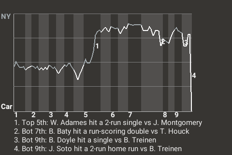 The game was decided with one out in the bottom of the ninth. With Carolina trailing 3-2, Soto jumped on a cutter from 37-year old right-handed pitcher Blake Treinen and hit a 2-run home run to center. With one swing, the Riptides had a walk-off win.