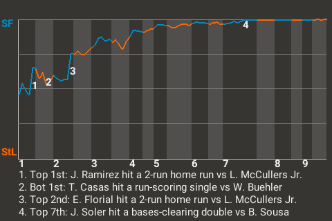 b - P. DeJong pinch hit for J. Ramirez in the 8th