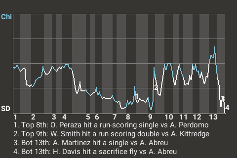 The clutch at-bat came in the bottom of the 13th inning, when San Diego catcher Henry Davis, facing Albert Abreu, had a run-scoring sacrifice fly. It gave the Snakeyes the 6-5 win.