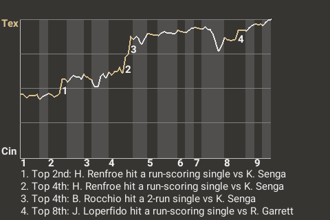 Texas starter Yu Darvish pitched well against the Cincinnati Stars at Great American Ball Park. The right-hander led his team to a win, 5-2. James McArthur earned his 1st save in 1 chances. With this game in the books, Texas is 54-65, Cincinnati 54-65.