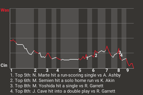 Today's win puts Cincinnati at 56-65, while Washington falls to 56-65.