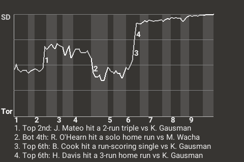 Behind the hitting of Henry Davis, the San Diego Snakeyes stopped the Toronto Hogs, 7-2. Davis was 1-4 with a home run and was hit by a pitch. He scored 2 runs and drove in 3 for the Snakeyes. The winning pitcher was Michael Wacha. His record now stands at 6-9. The right-hander went 5.2 innings, allowing 2 runs on 9 hits for the Snakeyes. San Diego is now 58-63, Toronto 61-60.