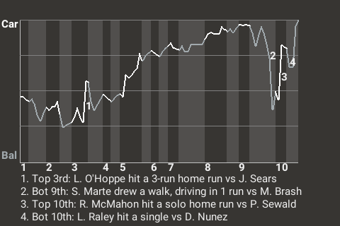 Ryan McMahon came through with a big-time hit for Carolina. The first baseman smacked a solo home run in the top of the tenth inning to give his team the lead, 7-6. It was his only hit, but it was clutch.