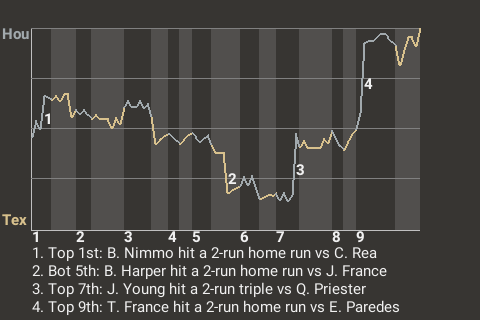 Houston needed the clutch hitting of Ty France to seal the deal. The designated hitter swatted a 2-run home run in the top of the ninth inning to put the Titans on top, 6-4. For the game, France had 1 home run and 1 single in 5 at-bats.