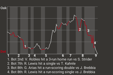 The game was all tied up in the bottom of the eighth, until Lewis delivered big-time for Detroit, stroking a dramatic run-scoring single off John Brebbia. The game-changing hit put the Demons on top, 7-6.