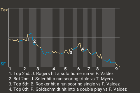 Texas got a decent performance from pitcher Tobias Myers, but it wasn't enough to beat the San Francisco Dragons. San Francisco won the Pac Bell Park contest, 4-2. Myers threw 7.0 innings of 4-hit ball for the losing team. San Francisco starter Framber Valdez was credited with the win after throwing 109 pitches over 6 innings. His record now stands at 12-8. Mason Miller notched his 27th save in 30 chances.