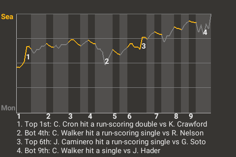 Junior Caminero had a direct impact on the outcome. Caminero contributed a run-scoring single in the top of the sixth inning to put Seattle up, 3-1.