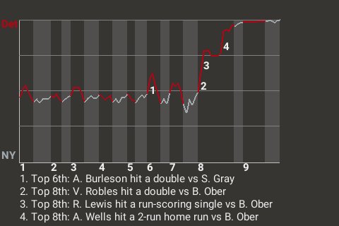 Who knows how it would've ended, had it not been for Royce Lewis? The 26-year old shortstop Lewis stroked a run-scoring single in the top of the eighth inning to put Detroit up, 1-0. For the game, he was 2 for 5, including 1 double and 1 single.