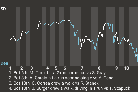 With Texas leading 1-0 in the top of the second, Cronenworth hit a curveball from Patrick Sandoval for a 2-run home run. It was his 1st home run of the season and put the Vipers ahead, 3-0.